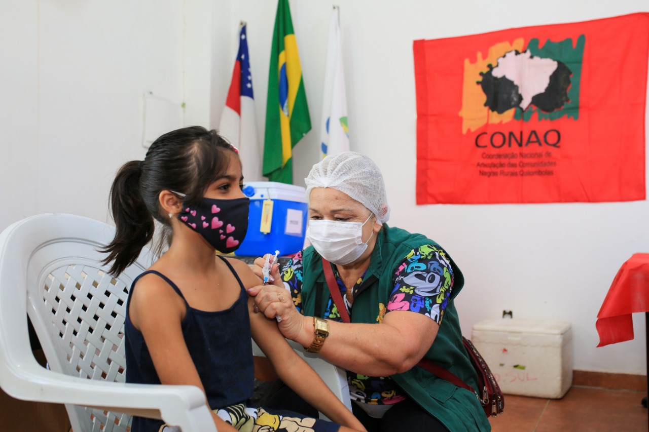 Manaus - Crianças de 5 a 11 anos do quilombo Barranco de São Benedito, localizado na Praça 14 de Janeiro,…