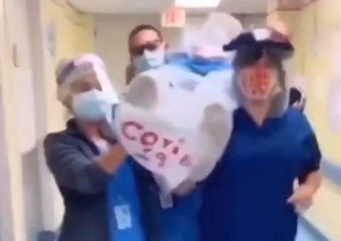 Um vídeo que mostra profissionais da saúde carregando um suposto corpo em um saco escrito ‘Covid-19’ viralizou na web e…