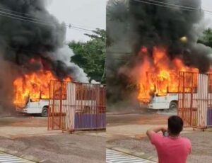 Manaus - Na manhã desta segunda-feira (12), um ônibus do transporte coletivo ficou completamente destruído após pegar fogo no Parque…