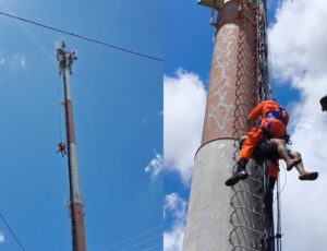 Veja momento em que homem é resgatado de torre de telefonia no bairro Compensa